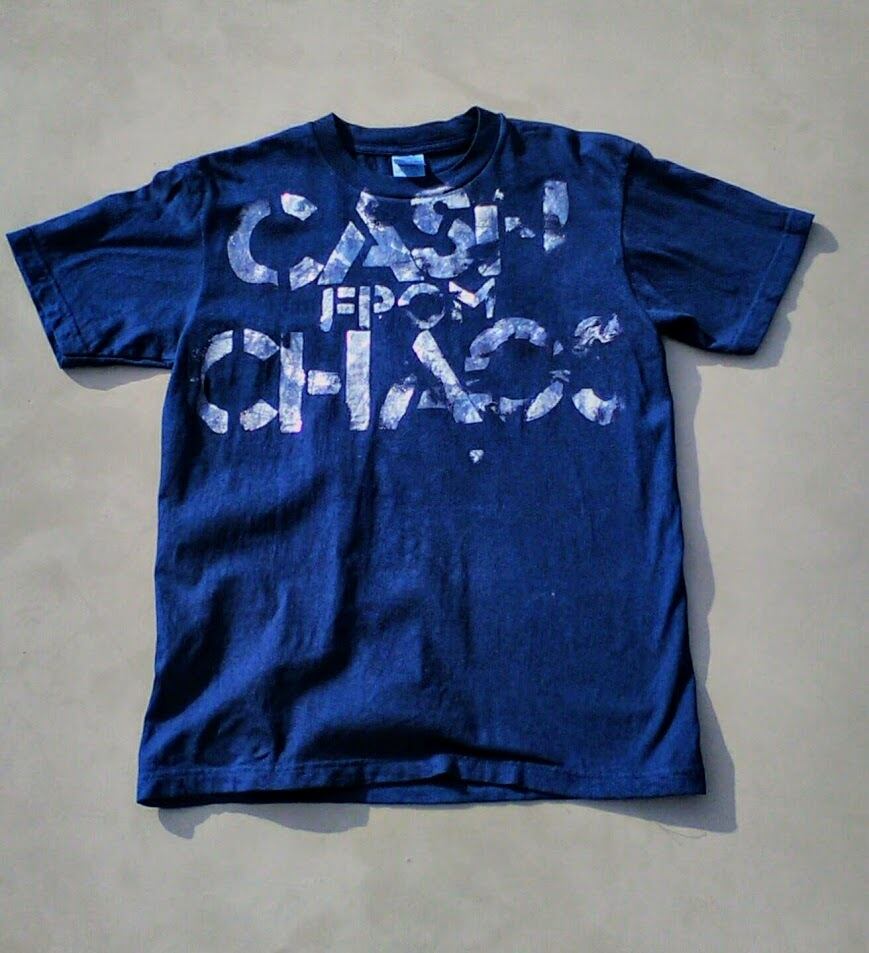 Tシャツを藍染めした後に金彩加工により